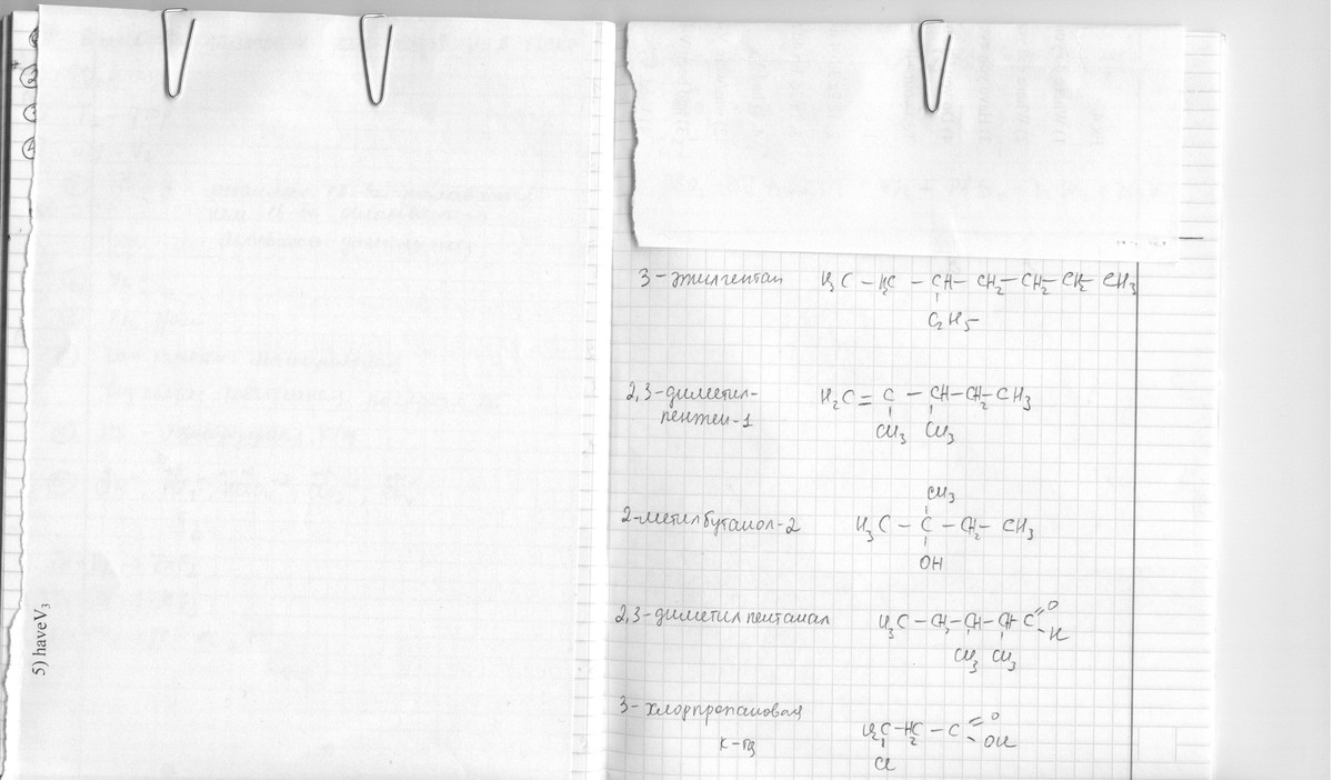 2-метилбутанол-2, 2,3-диметилпентаналь, 3-хлорпропановая кислота