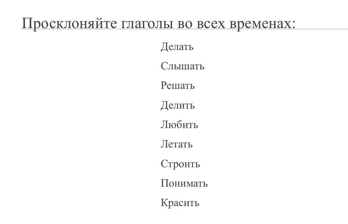 Ответ:делал, делает,сделает.слышал,слышит,услышит.решал,решает,решит.делил,делит,поделиться.любил,любить,полюбит.летал,летать,по летать.