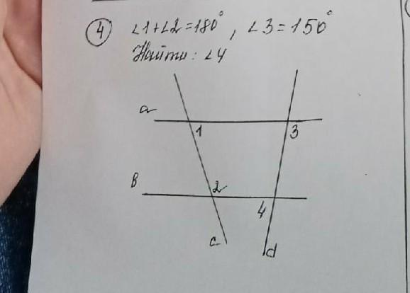 Объяснение: Если ∠3=150°, а ∠4 внешний накрест лежащий относительно ∠3, то 180-150=30°