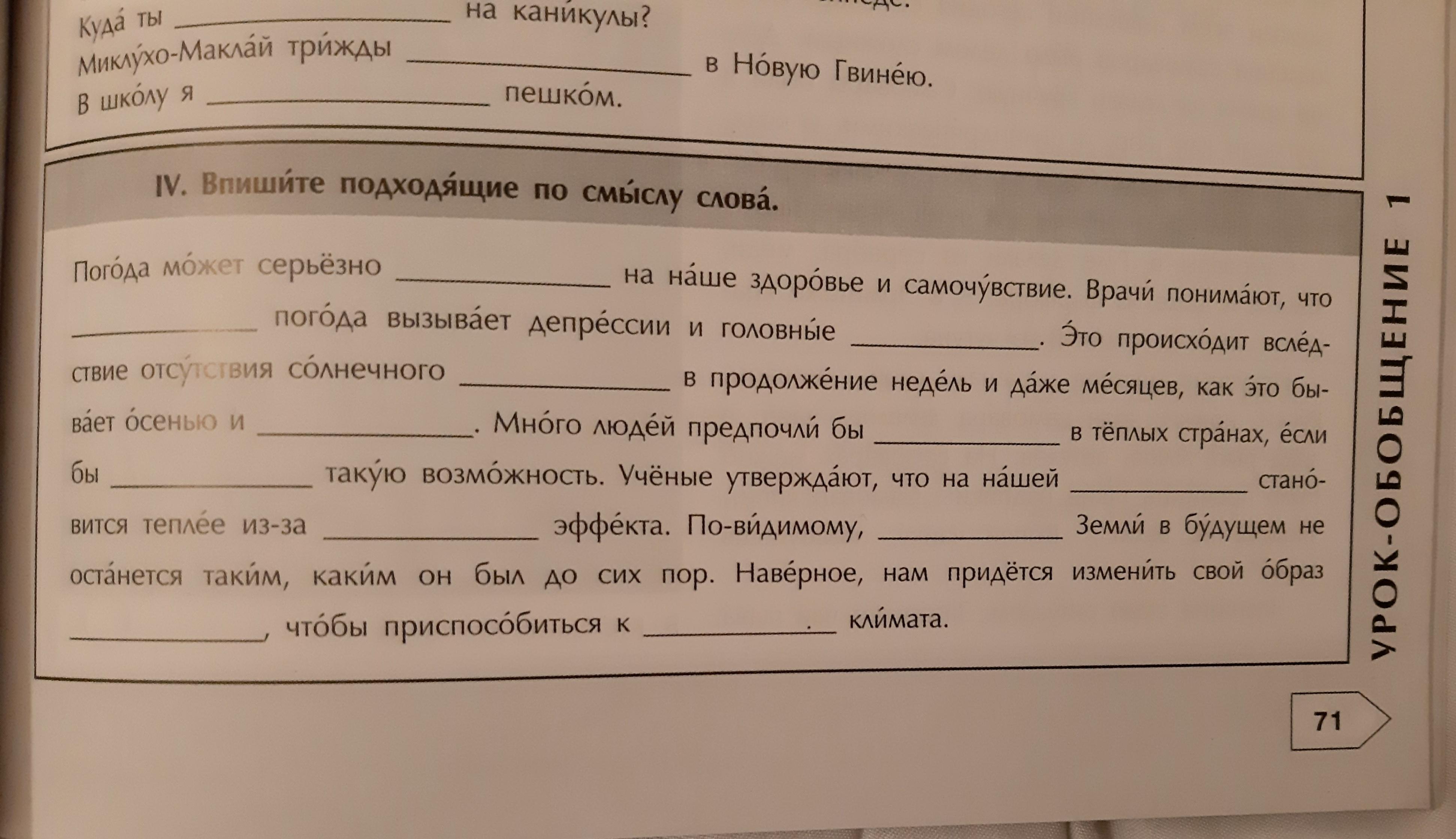 Впишите подходящие по смыслу слова.