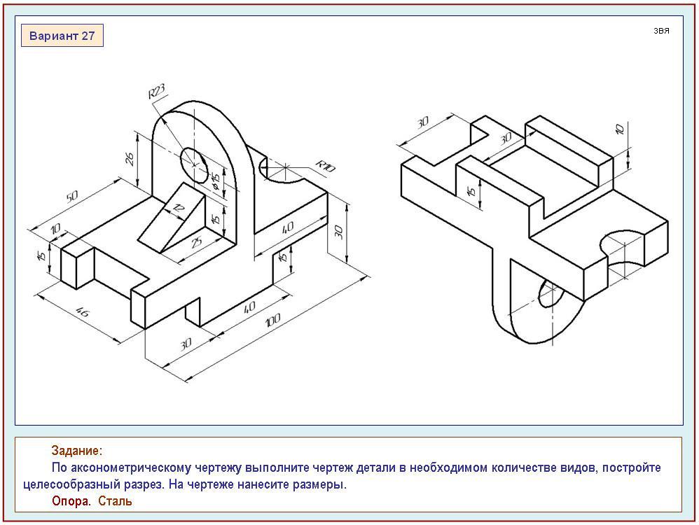 Чертёж из трёх проекций детали с фронтальным разрезом см. на фото.