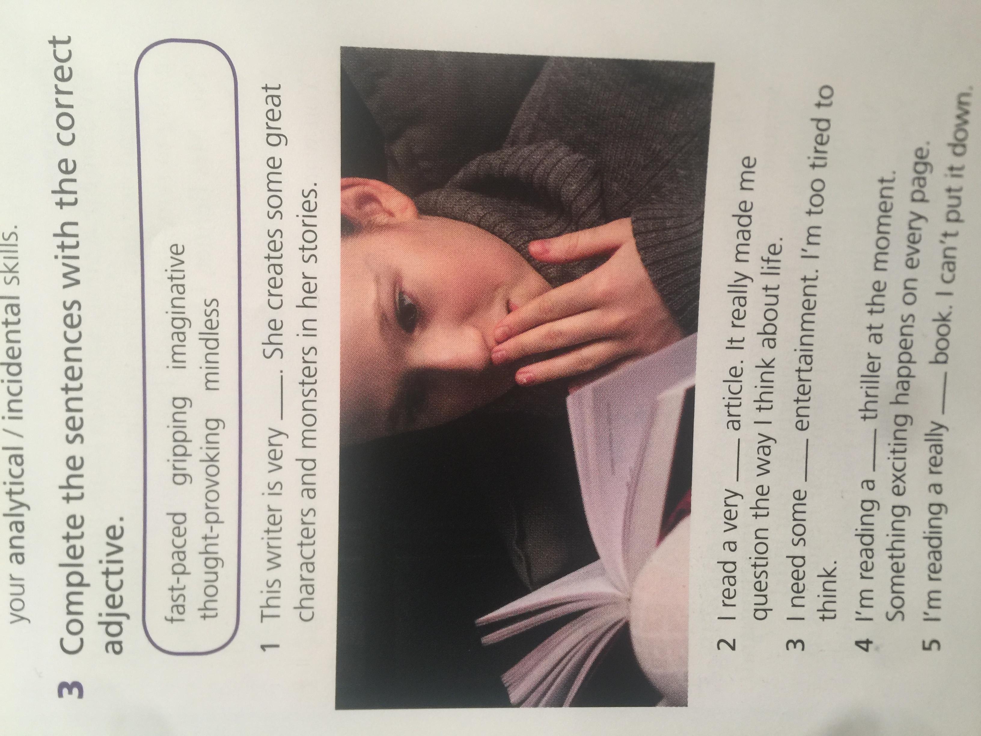 4) I'm reading a__thriller at the moment. Something exciting happens on every page.