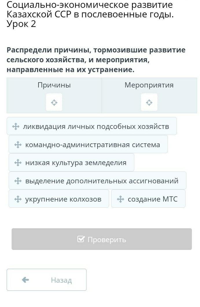Распредели причины, тормозившие развитие сельского хозяйства, и мероприятия, направленные на их устранение.