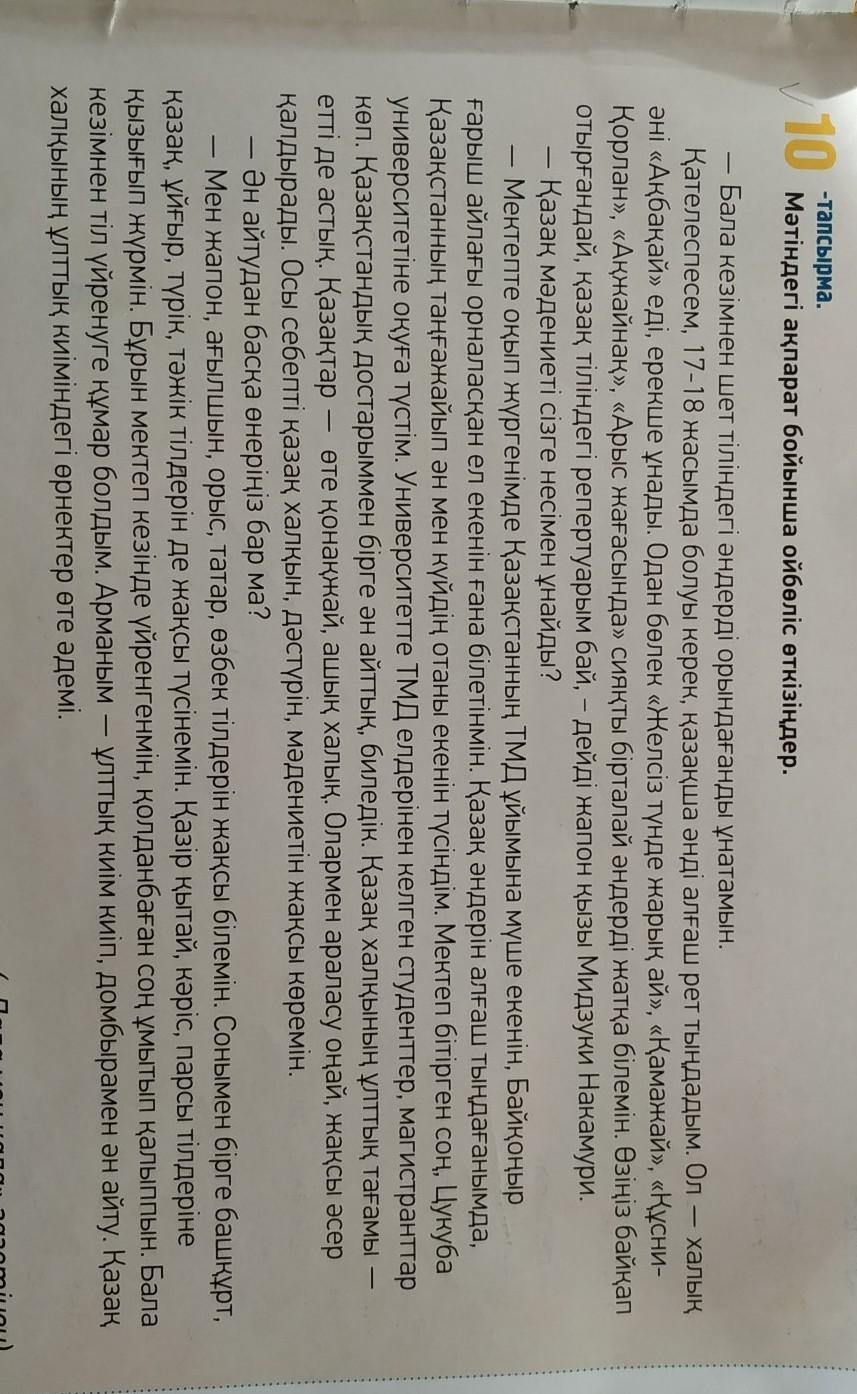 10-тапсырма. Мәтіндегі ақпаратпен ойбөліс.