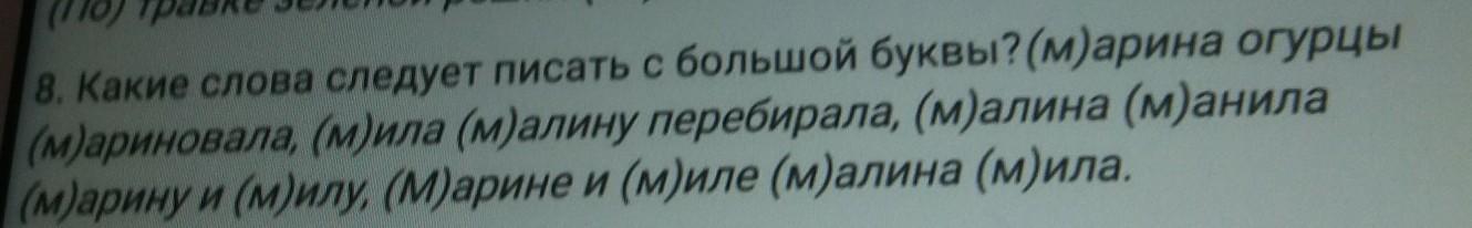 8. Какие слова следует писать с большой буквы? (м)арина огурцы