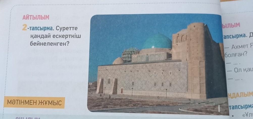 Суретте Қожа Ахмет Ясауи кесенесі бейнеленген.
