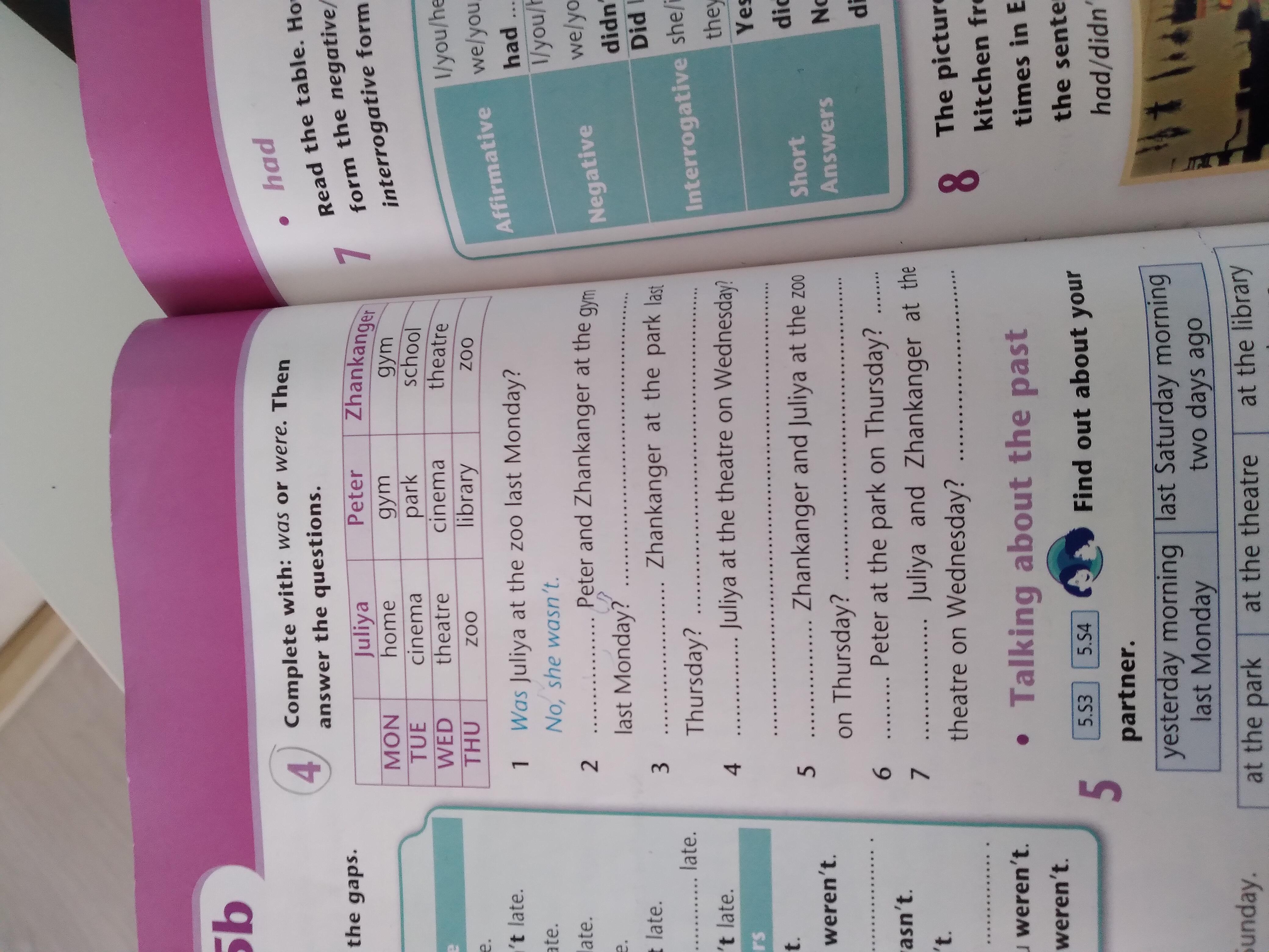 Стр 60 упр 4:Complete with: was or were. Then answer the questions.
