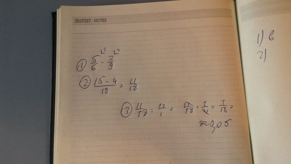 1) 5/6-2/9= 15/18- 4/18= 11/18