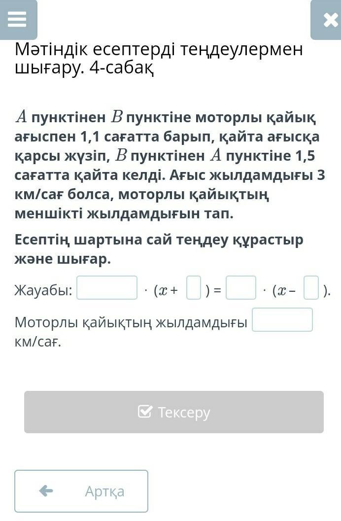 Есептің шартына сай теңдеу құрастыр және шығар.