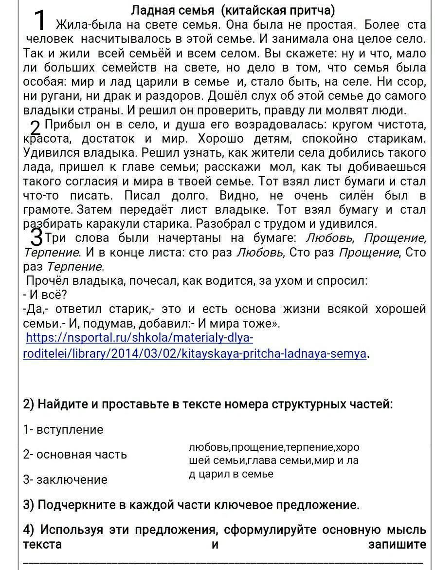 притча «Ладная семья».