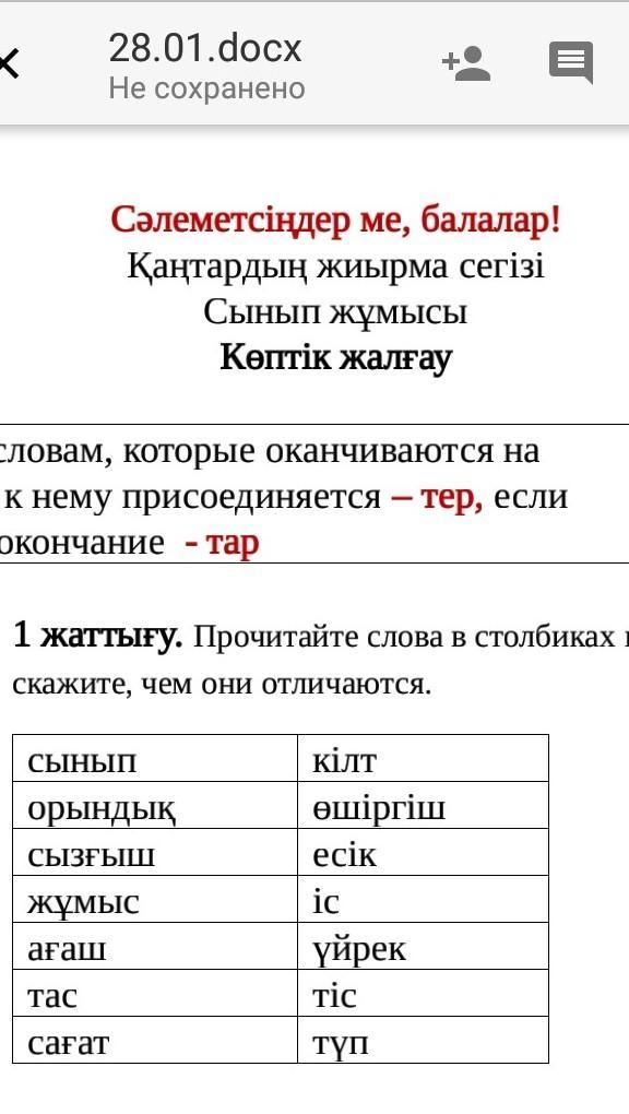 бірінші кестедегі сөздер жуан дауысты дыбыстардан құралған,ал 2 ші кестеде керісінше жіңішке дауысты дыбыстардан құралған