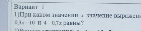 0,3х – 10 и 4– 0,7х равны? ПОМОГИТЕ ПЖ даю 20 баллов, с решением