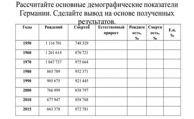 2015 год Рождении 737 575 Смертей 925 200 Естественный прирост -187 625 Коэффициент рождаемости 9.0 Коэффициент рождаемости 11.3 Естественный прирост -2.2