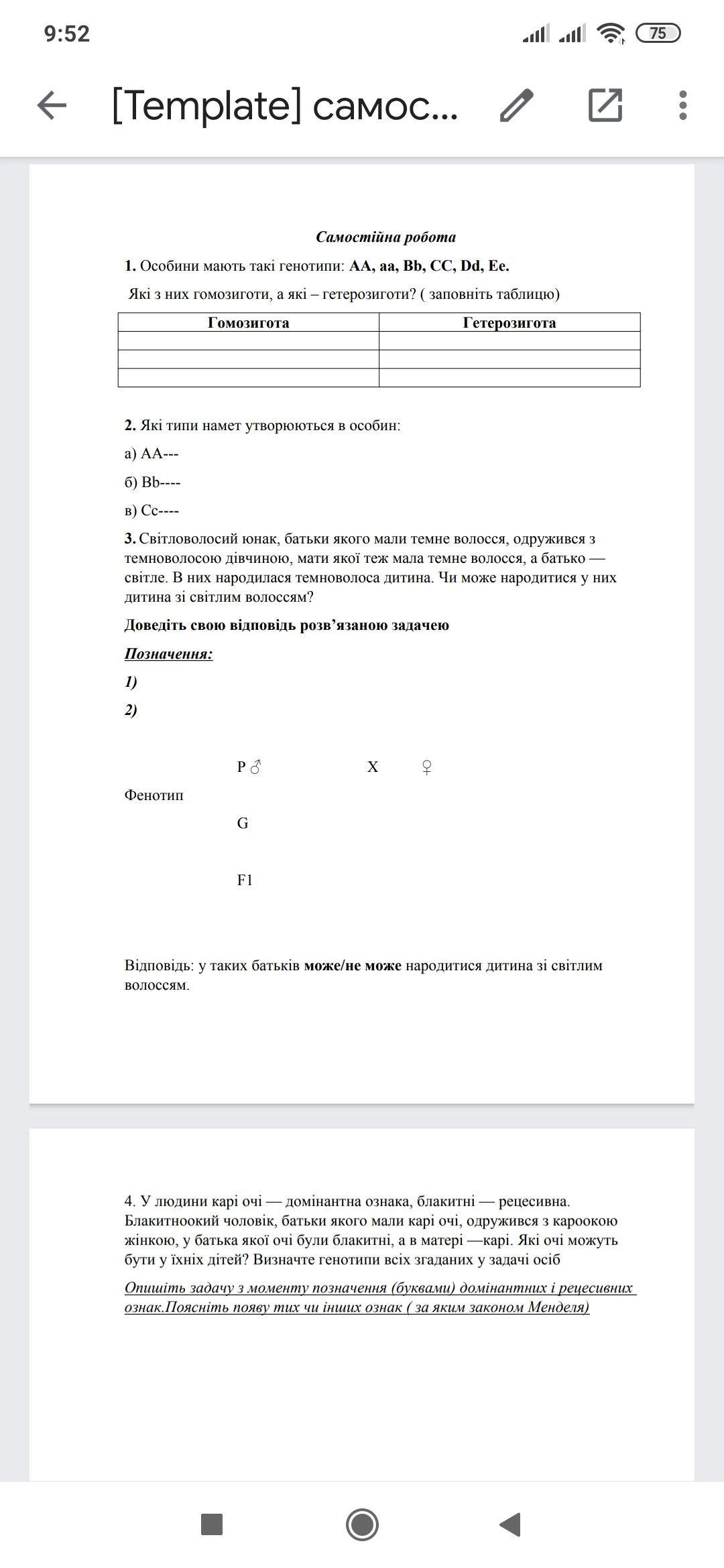 Расщепление по генотипу 1:1, расщепление по фенотипу 1:1. Ребенок может иметь как генотип aA (темные волосы), так и генотип aa (светлые волосы). Рождение темноволосого ребенка не исключает рождения светловолосого ребенка в будущем.