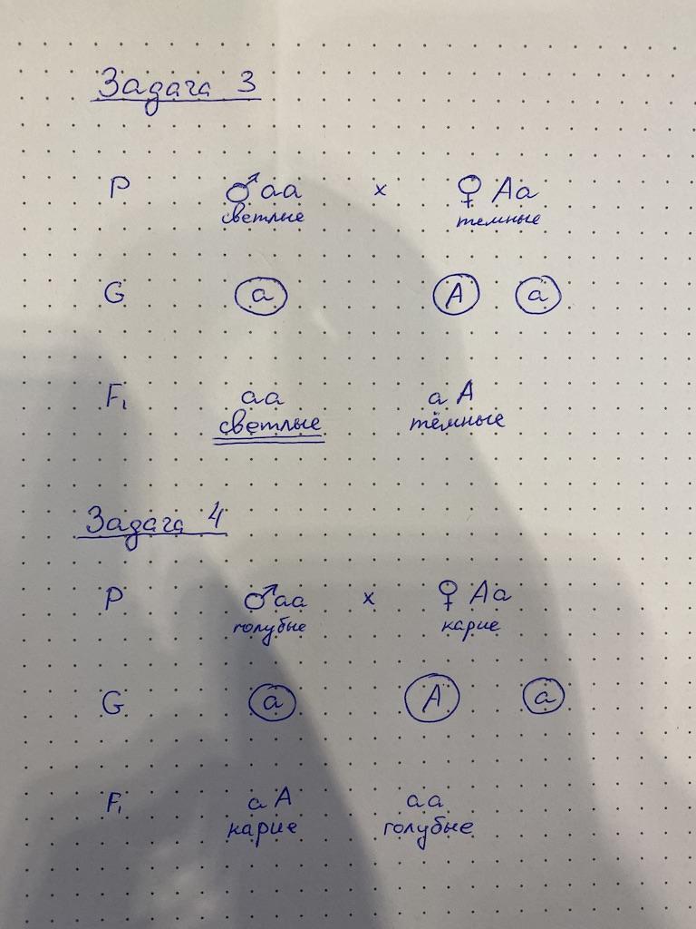 4) Обозначим A -- карие глаза (доминантный признак), a -- голубые глаза (рецессивный признак).