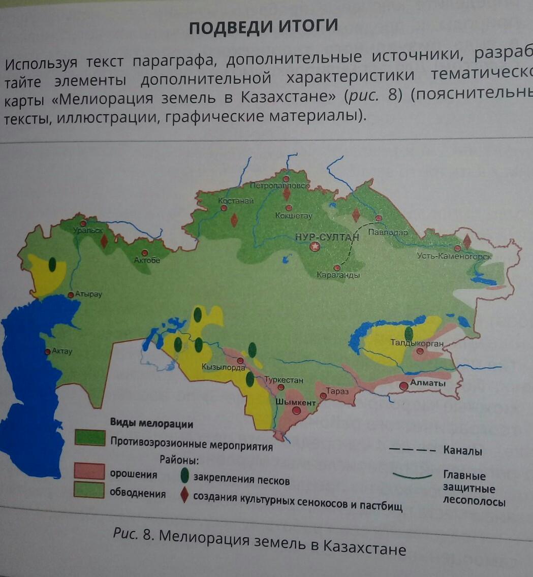 Используя текст параграфа, дополнительные источники, разработайте элементы дополнительной характеристики тематической карты «Мелиорация земель в Казахстане» для Павлодарской области (пояснительные тексты, иллюстрации, графические материалы).