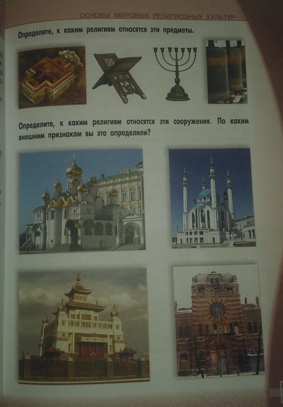 Определите, к каким религиям относятся эти сооружения. По каким внешним признаком вы это определили?