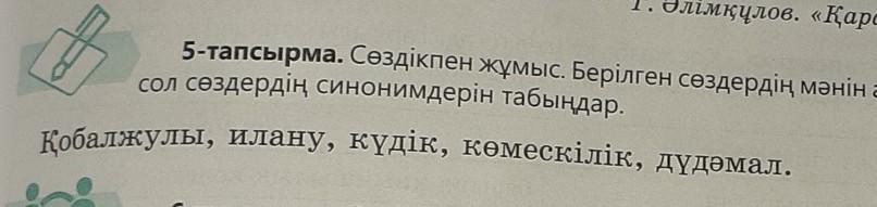 Сөздікпен жұмыс. Берілген сөздердің мәнін ашыңдар. Ол үшін сол сөздердің синонимдері табыңдар