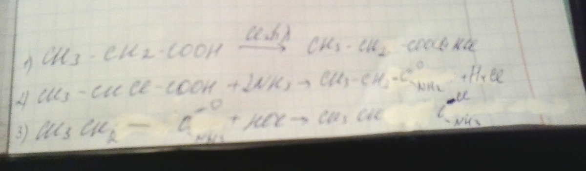 СН3-СН2-СООН + Cl2 -> CH3-CHCl -COOH + HCl