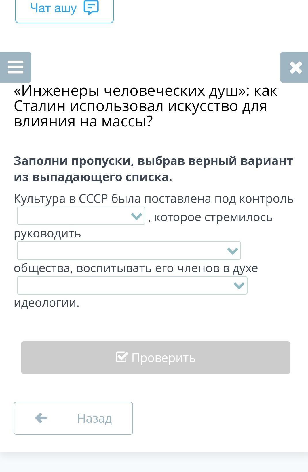 Культура в СССР была поставлена под контроль .........., которое стремилось руководить....... общества, воспитывать его членов в духе.......идеологии.