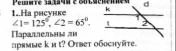 прямые не параллельны, так как 65+125=190 градусов , а не 180 (при параллельности)