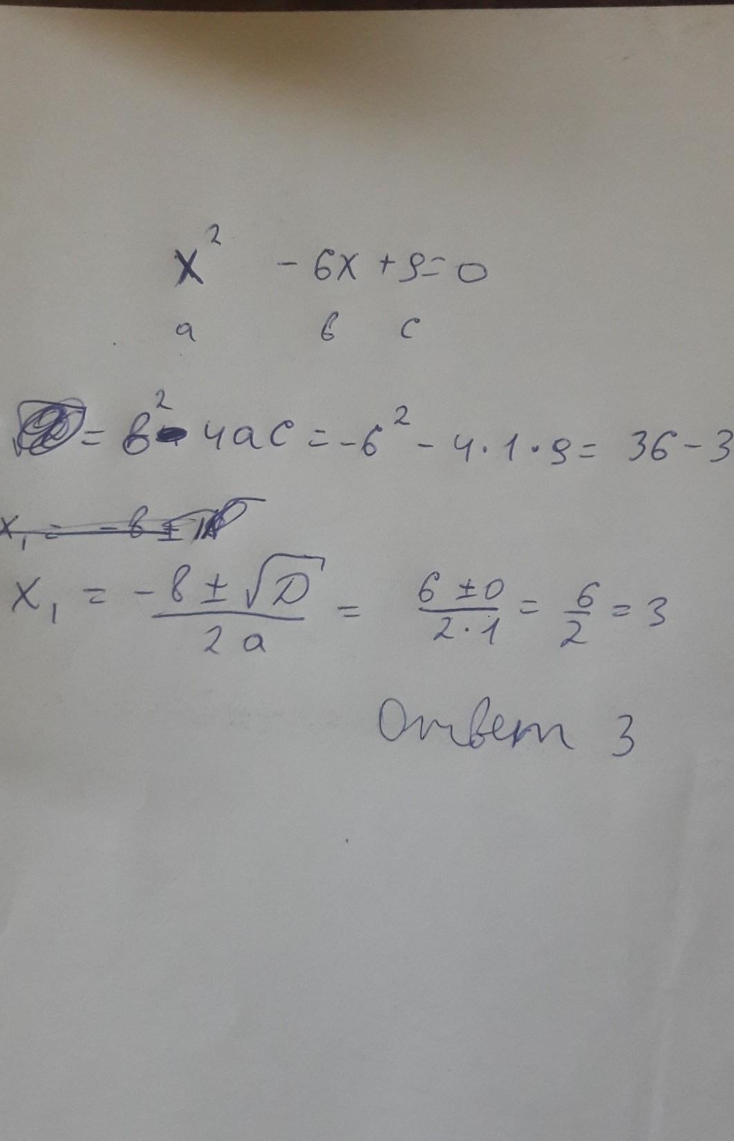 вот: x²-6x+9=0;(x-3)²=0;x-3=0;x=3