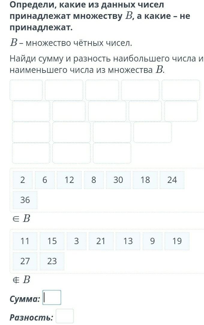 В = {2; 6; 12; 8; 30; 18; 24; 36}