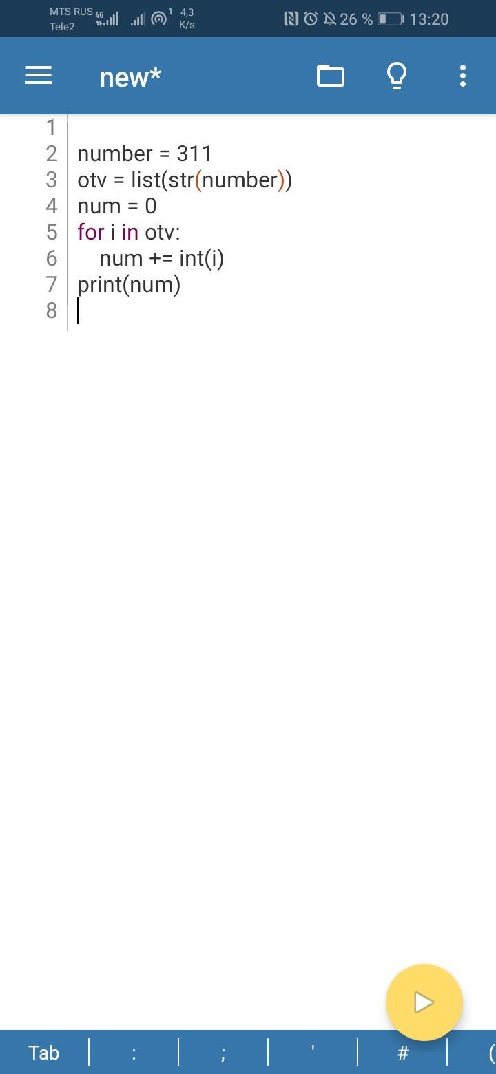 Например: Число 324. Сумма 3+2+4=9. Ответ:9