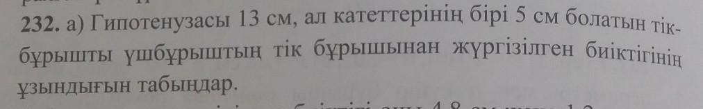 232. а) Найдите длину, равную высоте прямого угла прямоугольного треугольника с гипотенузой 13 см и одним из катетов 5 см.