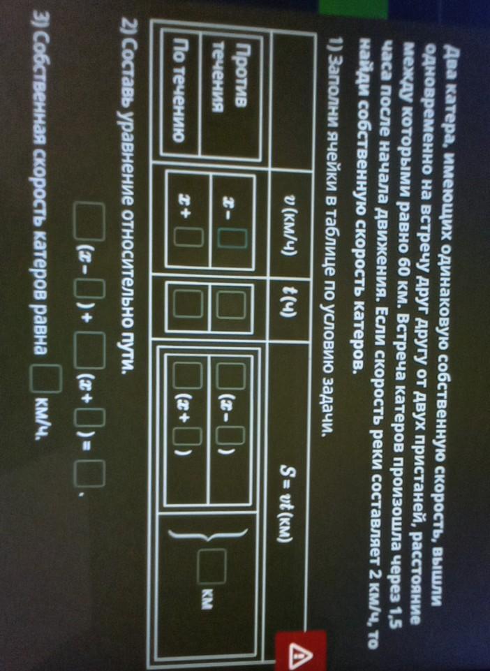 Так, как скорость катеров равна, то мы можем принять её за x: