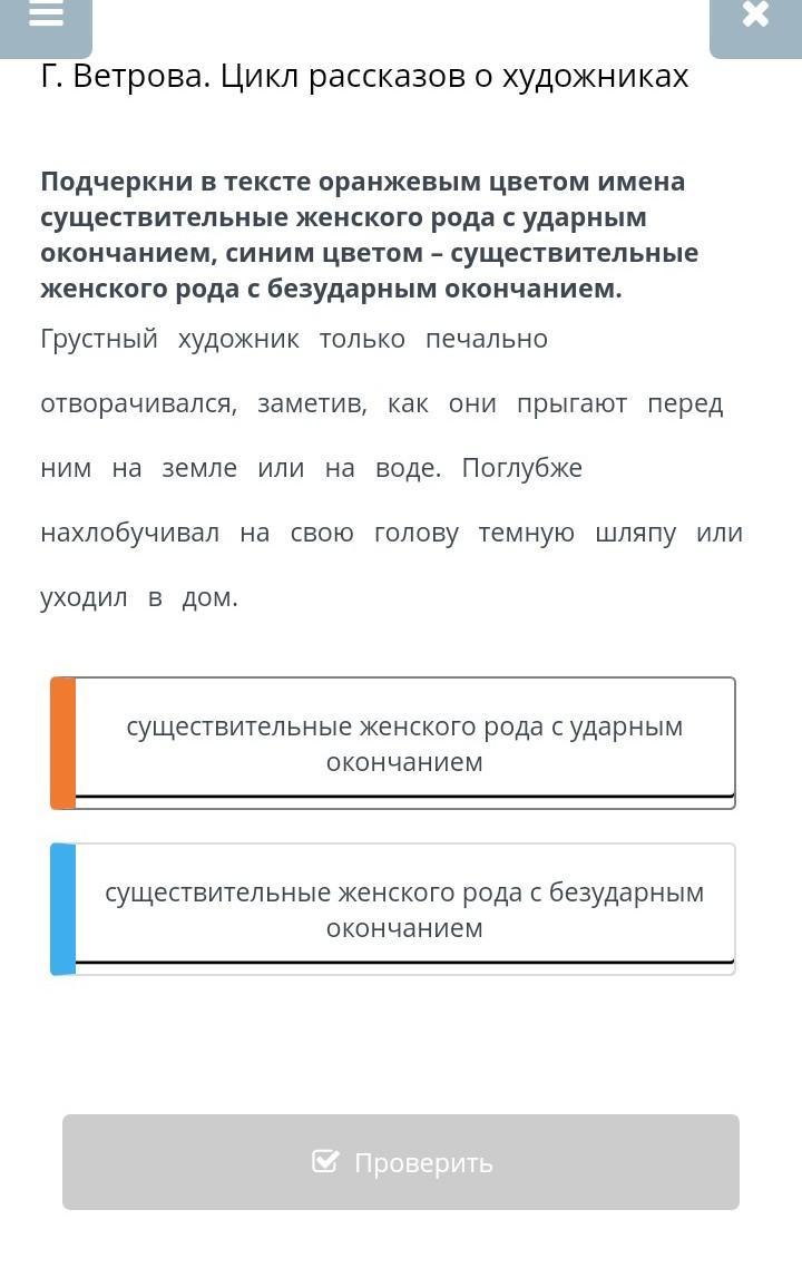 подчеркни в тексте оранжевым цветом существительные женского рода с ударным окончанием, синимцветом - существительные женского рода с безударным окончанием