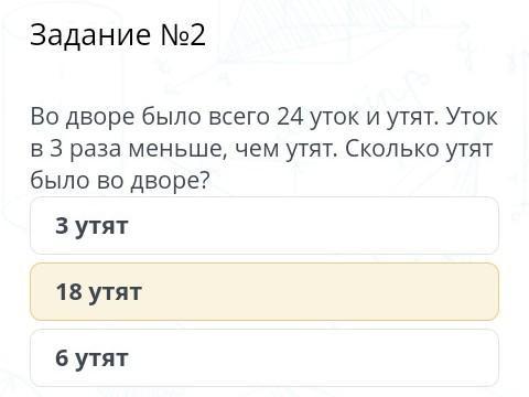 Во дворе было всего 24 уток и утят.Уток в 3 раза меньше,чем утят.Сколько утят было во дворе?