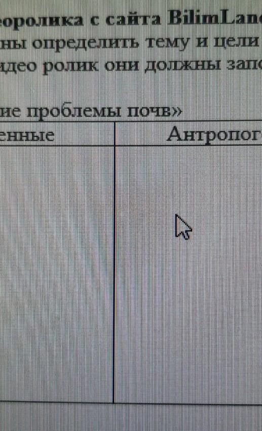 определите что является почвенными ресурсами,объясните,почему Казахстан занимает 3 место в мире по обеспеченности землёй на 1 человека перечислите экологические проблемы почв определите комплекс мер по защите почв результат представьте в виде таблицы.Сделайте выводы.В таблице написано естественные и антропогенные. СРОЧНО НУЖНО. ДАЮ 100 БАЛЛОВ.