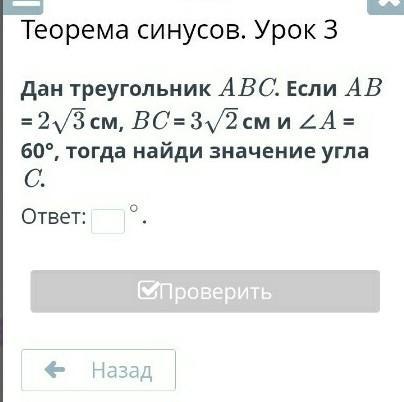 sin ∠с = 2√3√3 / 6√2 = 3/3√2 = 1/√2 = √2/2 = 45°