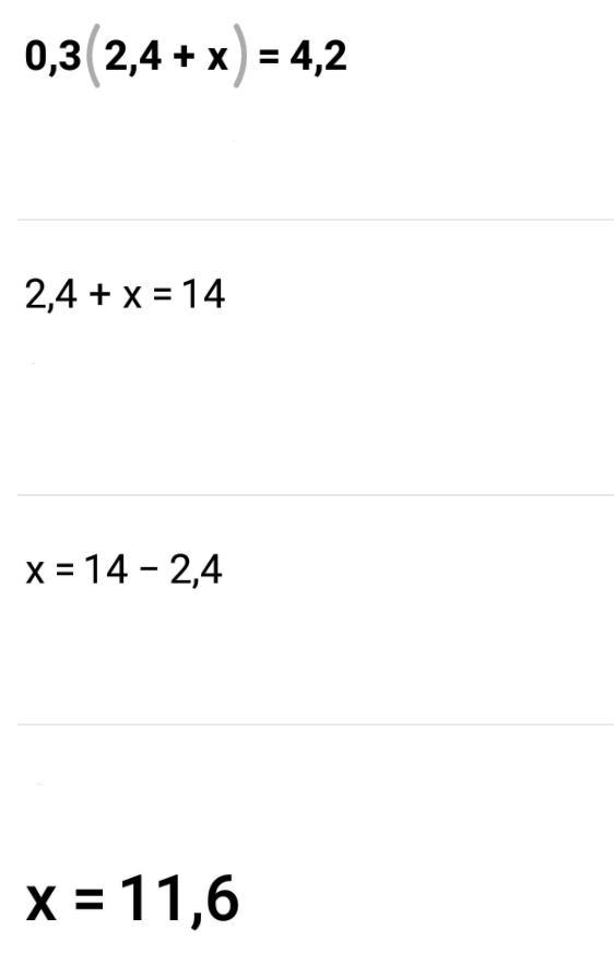 0,3×(2,4+x)=4,2 ответ на третем фото