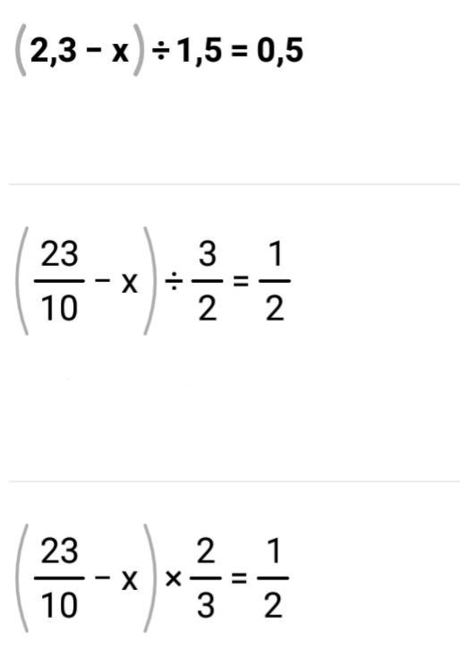 (2,3-x)÷1,5=0,5 ответ на четвертом и пятом фото. На 5 фото ответ будет: х=31/20