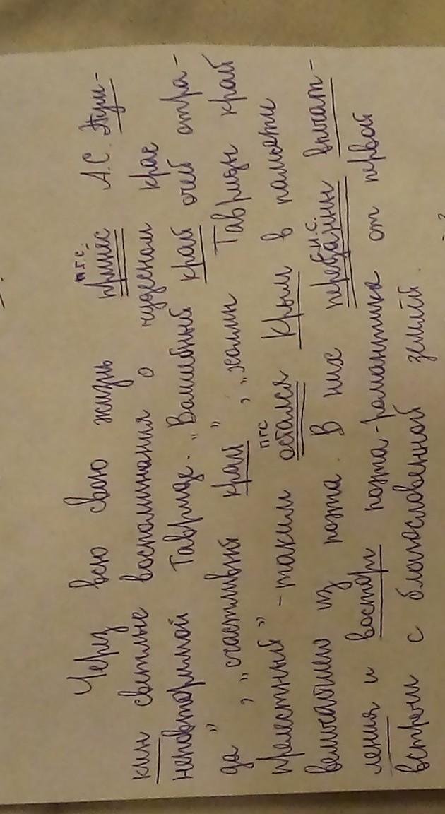 Через всю свою жизнь пр…нес А.С.Пушкин светлые во…поминания о ч…десном крае (не)повторимой Т(т) авриде.«Волшебный край очей отрада» «счастливый край « «холмы Т(т)авриды край пр…лес…ный»- таким остался К(к)рым в памяти в…личайшего из поэта. В них п…р…дан(нн)ы впеч…тления и восторг поэта-романтика от первой встречи с бл…гословен(нн)ой з…млей.