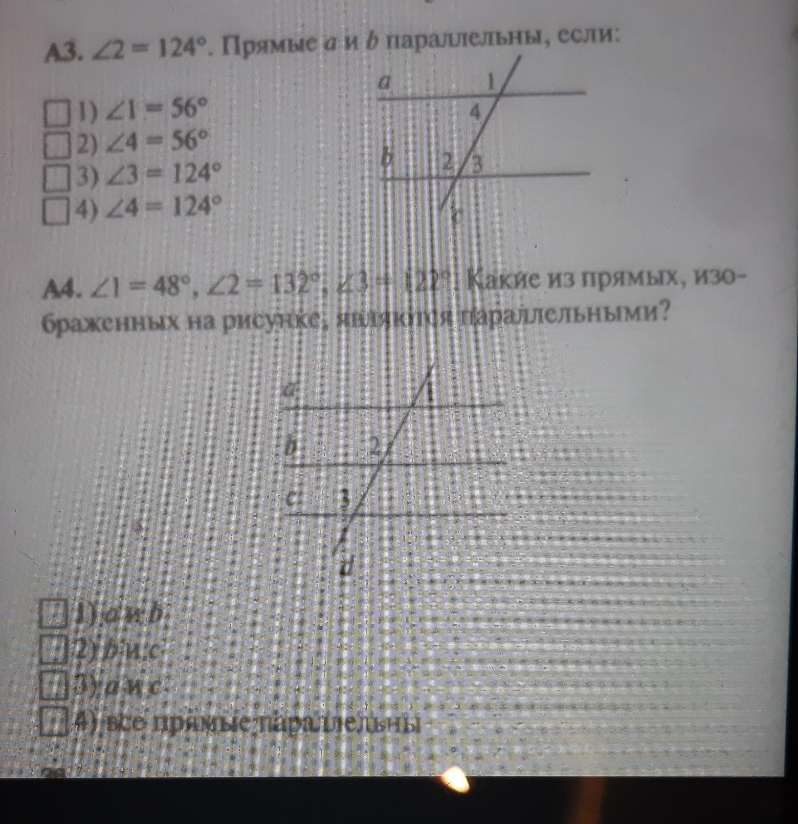 если сумма односторонних углов равна 180 градусам то прямые параллельны, а сумма 2 и 4 угла как раз равна 180(56+124=180)это под а3