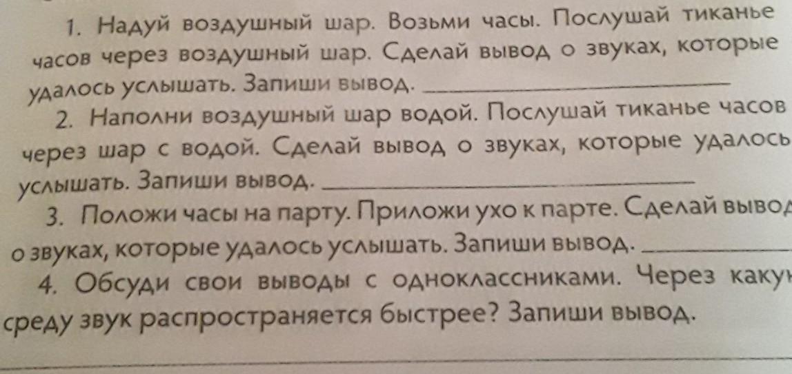 часов через воздушный шар. Сделай вывод о звуках, которые
