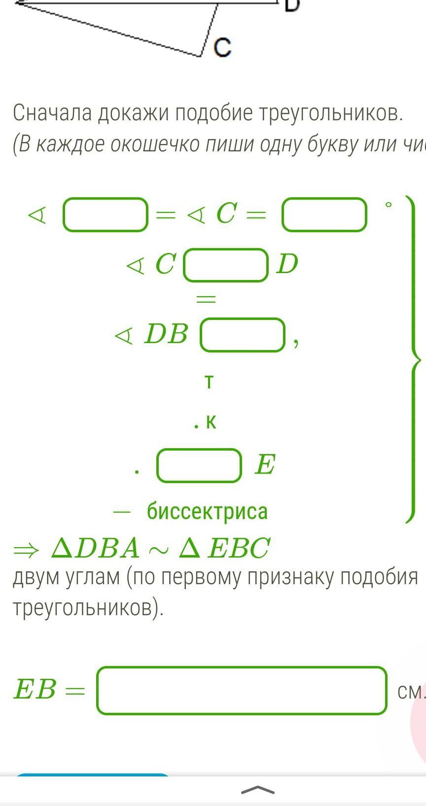 Вычисли EB, если AD= 6 см, AB= 8 см, CE= 3,6 см.