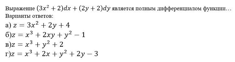 Выражение (3x^2+2)dx+(2y+2)dy является полным дифференциалом функции…