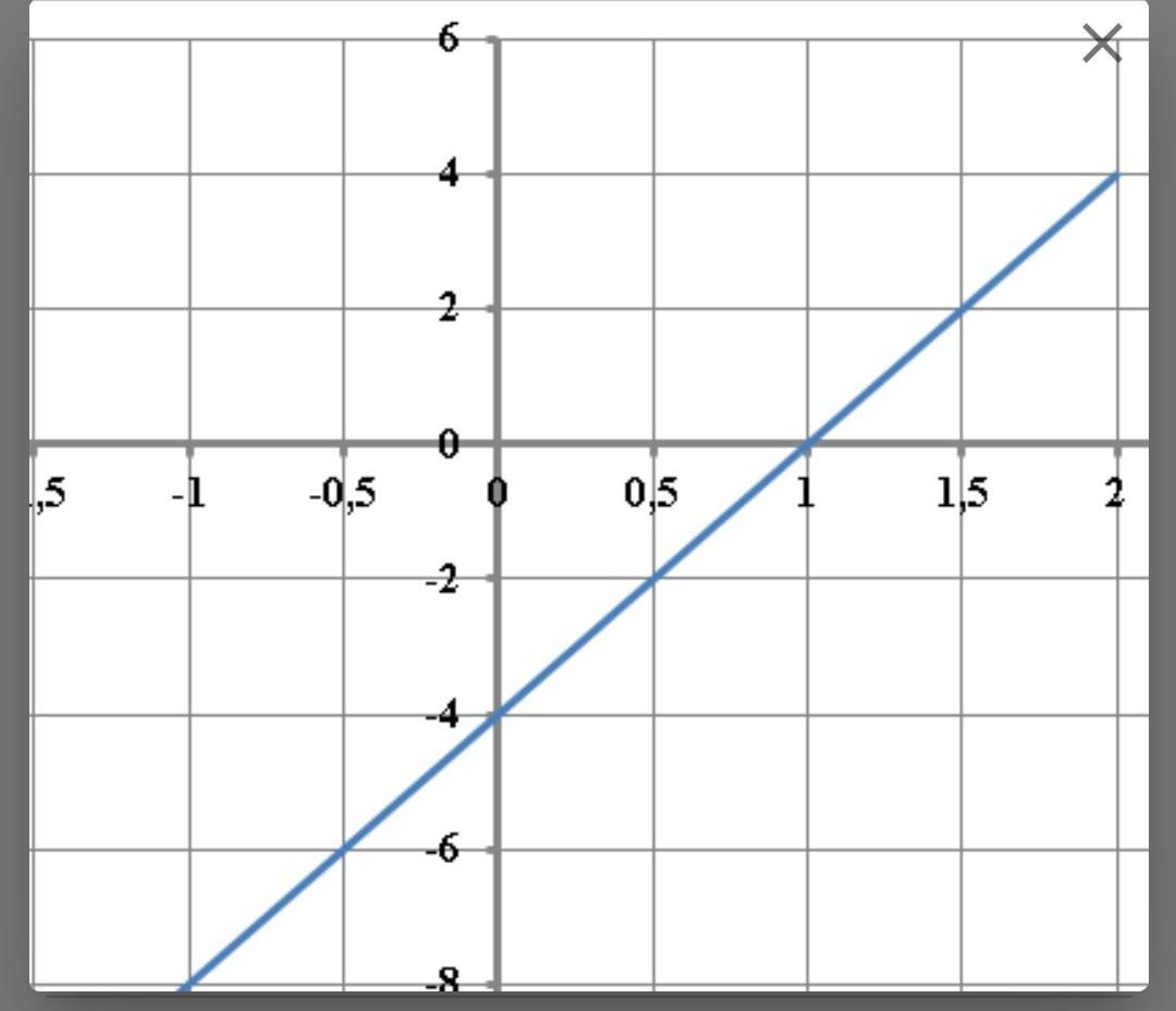 Найдем сначала k: k = тангенсу угла, образованного прямой и осью Ох. Образуем прямоуг. треугольник (как угодно), чтобы найти тангенс. Самый простой - "верхняя часть" показанной функции. Тангенс = 4 (катет = 4 поделить на катет = 1)