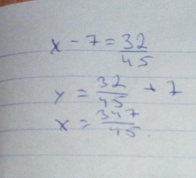 *Надо перенести постоянную в правую часть и сменить её знак: x=32/45+7