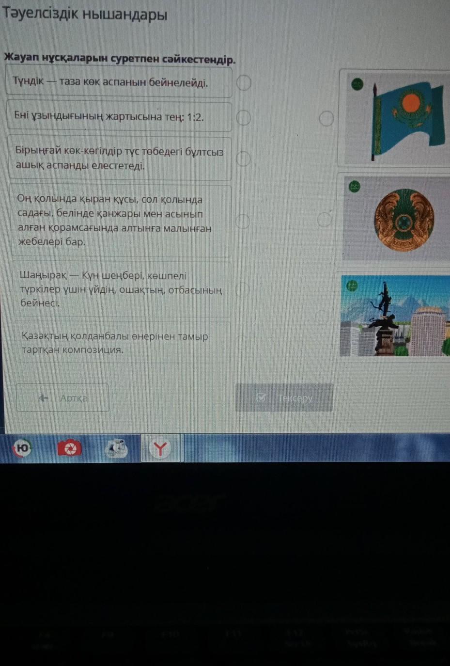 тәуелсіздік нышандары. жауап нұсқаларын суретпен сәйкестендір. ПОМОГИТЕ ПОЖАЛУЙСТА СРОЧНОО