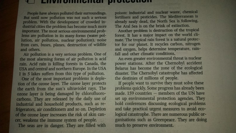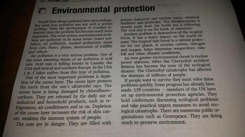 Если люди хотят выжить, они должны срочно решить эти проблемы. Некоторый прогресс уже сделан. 159 стран члены ООН, имеют агенства защиты окружающей среды. Они собирают конференции для обсуждения экологических проблем и принимают срочные меры для избежания экологической катастрофы. Существуют многочисленные общественные организации такие как Гринпис. Они много делают для сохранения окружающей среды.