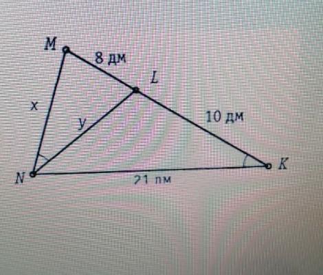 У треугольников △LNM и △NMK <MNL=<MKN, а угол <M - общий, значит эти треугольники подобны. Запишем пропорции: