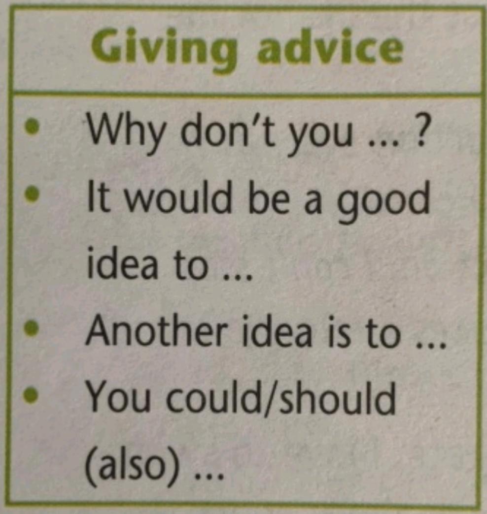 SB P 63 ex 3 – Use the prompts and the phrases in the picture to give advice, as in the example.