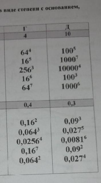 20 БАЛЛОВ!!! задание:Представьте данную степень в виде степени с основанием, указанным в соответствующем столбце