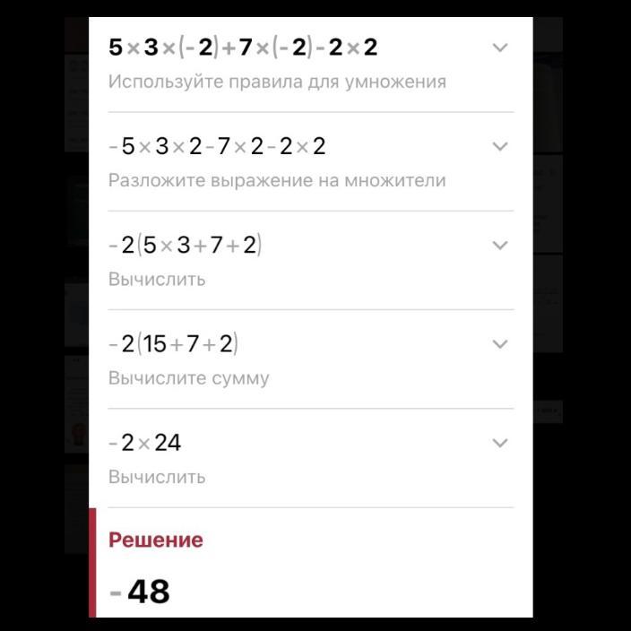 5×3×(-2)+7×(-2)-2×2= -40