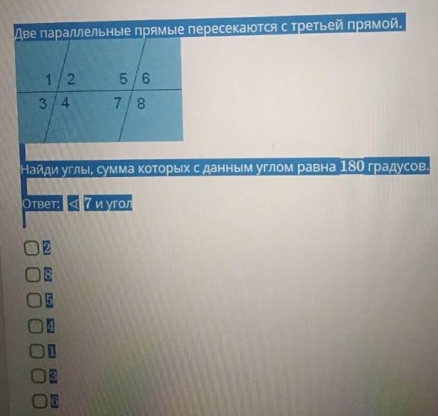Угол 7 и угол 8 в сумме дают 180 градусов